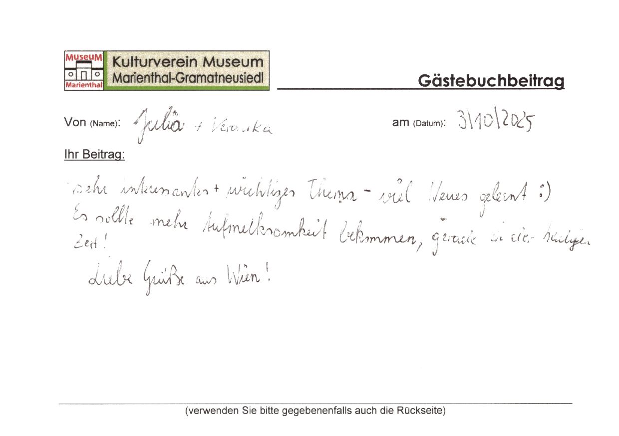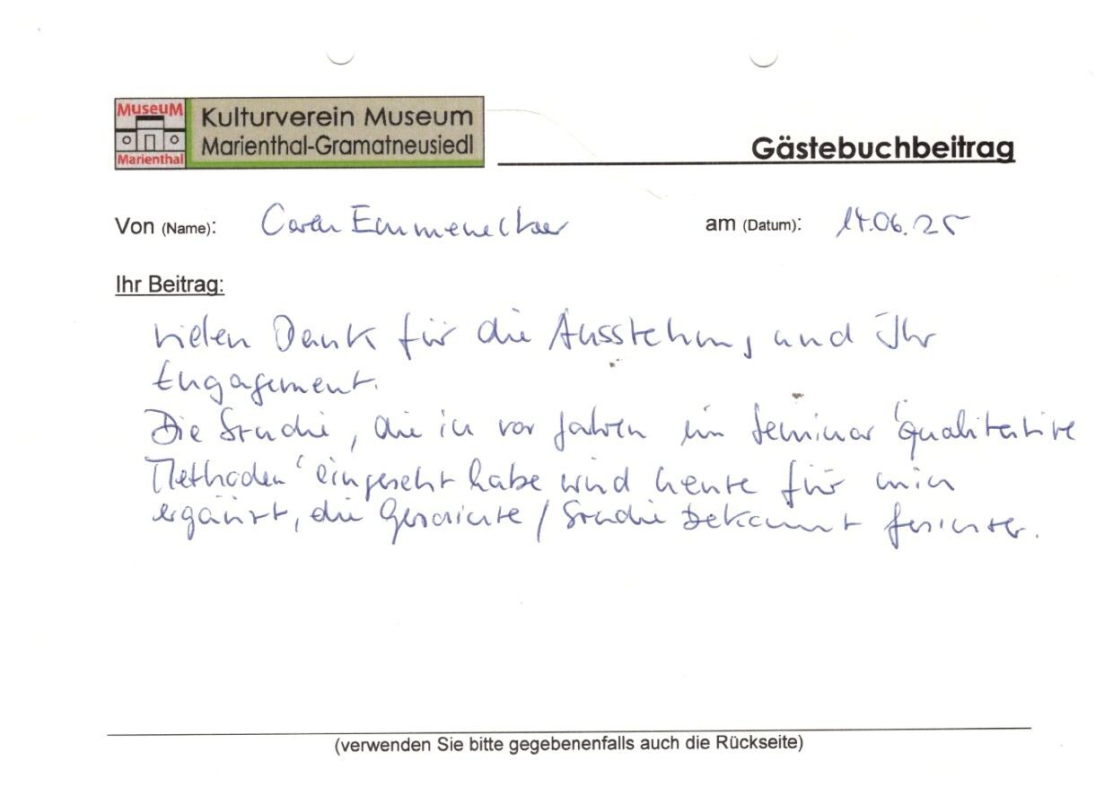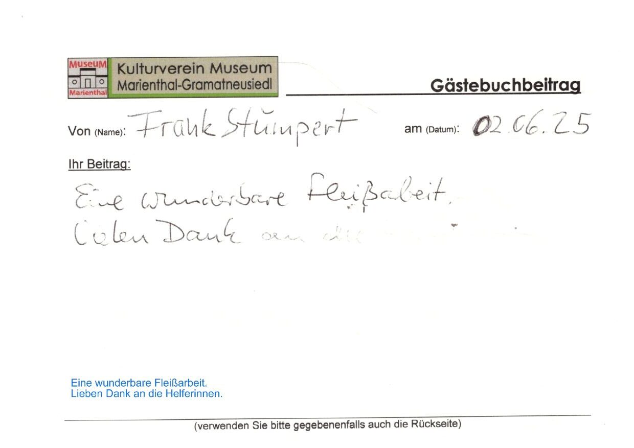 gästebuchbeiträge 2025 Jänner bis Juni 2025 2025-03-182025-05-032025-06-022025-06-122025-06-14 Juli bis Dezember 2025 2025-10-032025-10-11